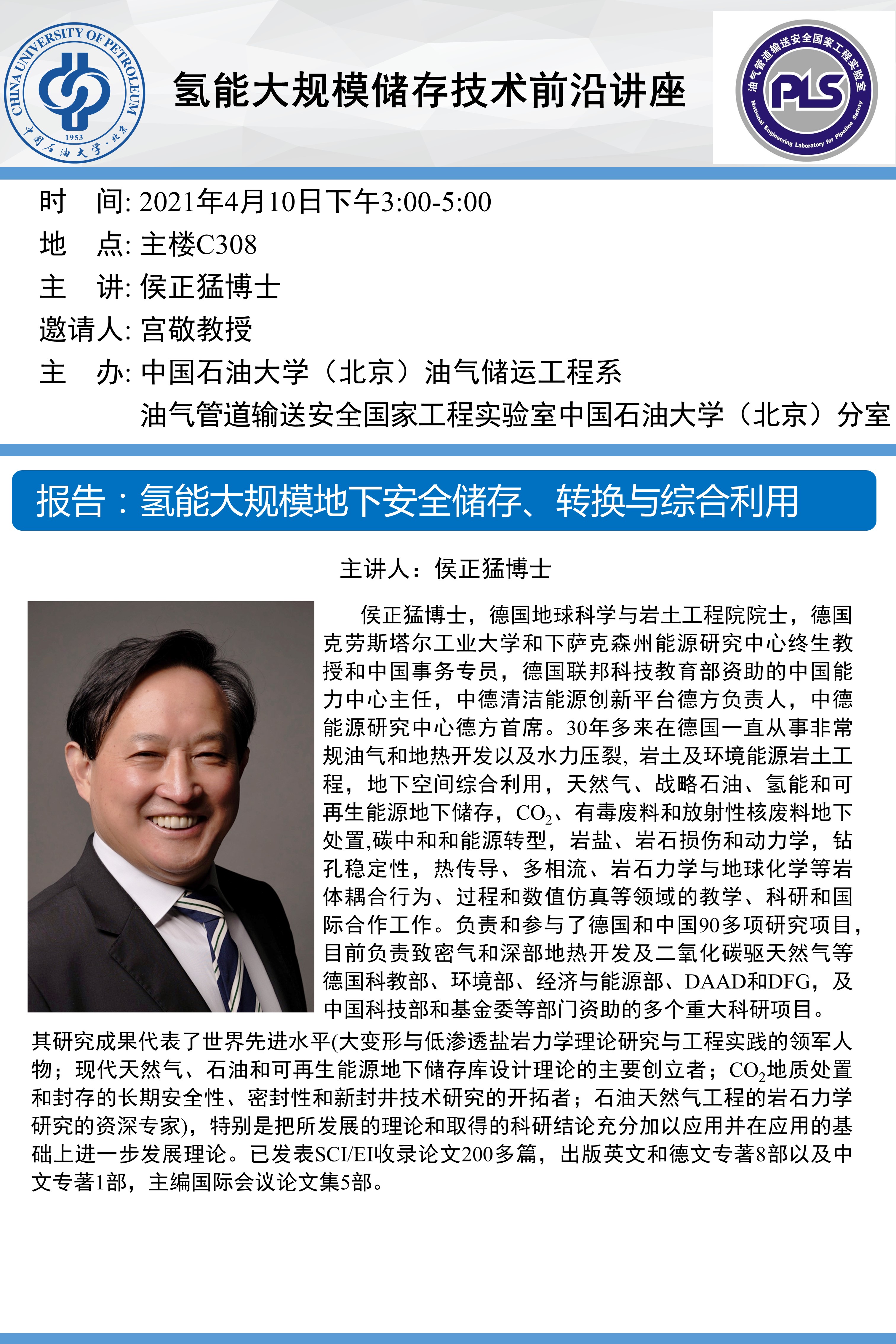 學術報告:氫能大規模地下安全儲存、轉換與綜合利用