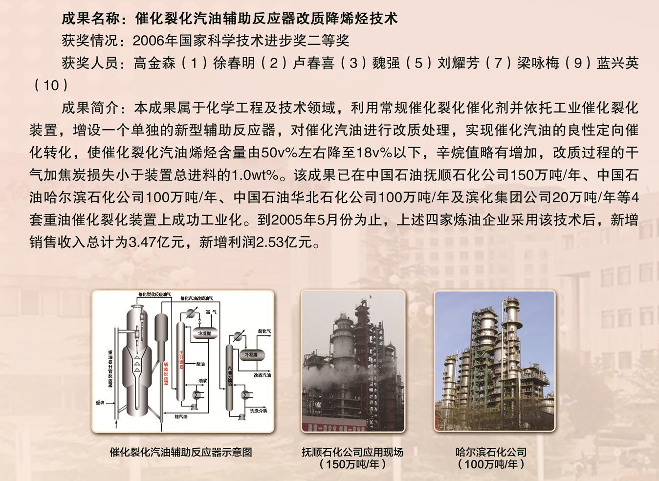 2006年-國家科技進步獎-二等獎-催化裂化汽油輔助反應器改質降烯技術-高金森