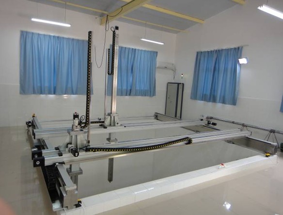 技術(shù)指標:雙工作頭定位系統(tǒng),每個工作頭4個自由度(三個平動自由度、一個轉(zhuǎn)動自由度),三個平動自由度的運動范圍分別為0-3800mm、0-3800mm和0-2700mm,平動自由度的定位精度為0.2mm,轉(zhuǎn)動自由度的運動范圍為0-360°。