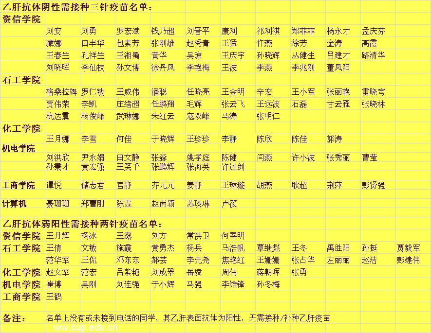 2008年畢業(yè)生體檢二對半結(jié)果需接種/補種疫苗名單