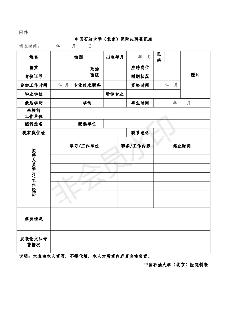 中國石油大學(北京)醫院應聘登記表