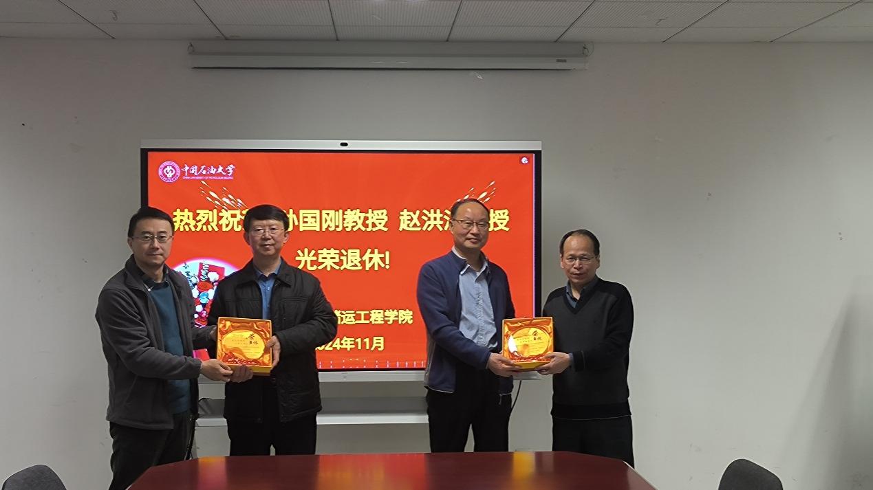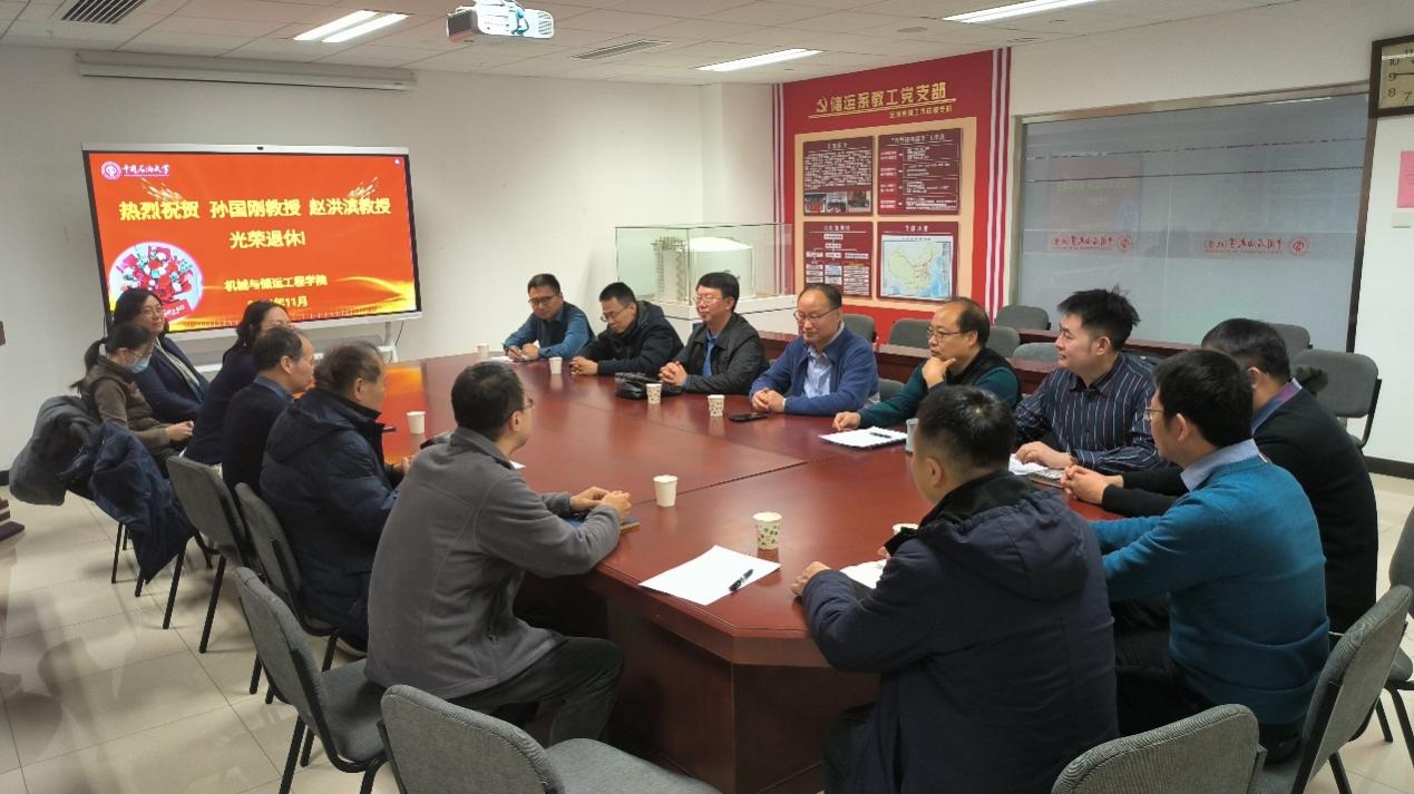 11月27日上午,機械與儲運工程學院在主樓B921會議室舉辦2024年下半年榮休座談會,慶祝孫國剛教授和趙洪濱教授光榮退休。機械學院院長李振林,黨委書記王瑋,副院長左麗麗,過程系、能動系部分教師代表參加了本次座談會,會議由工會主席彭鶴主持。