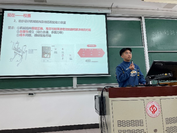此次活動還邀請了第九屆全國大學生機械創新大賽國獎二等獎獲得者機械18級于海文同學給大家做參賽經驗分享,于同學從學生的視角出發,以時間為節點講述了自己參賽的整個心路歷程,和準備比賽過程中各個階段需要注意的問題,且對今年“自然?和諧”的主題提出了自己的看法。于海文同學在分享中指出“創新應從實際出發,不應為創新而創新”,引導學生發現問題,解決問題。