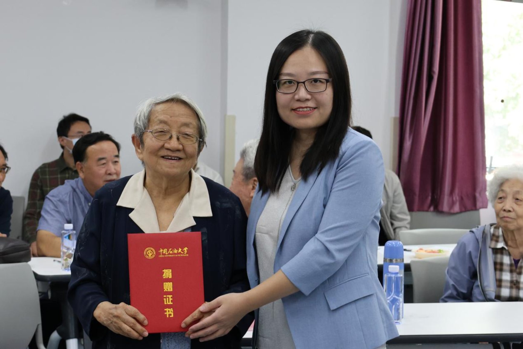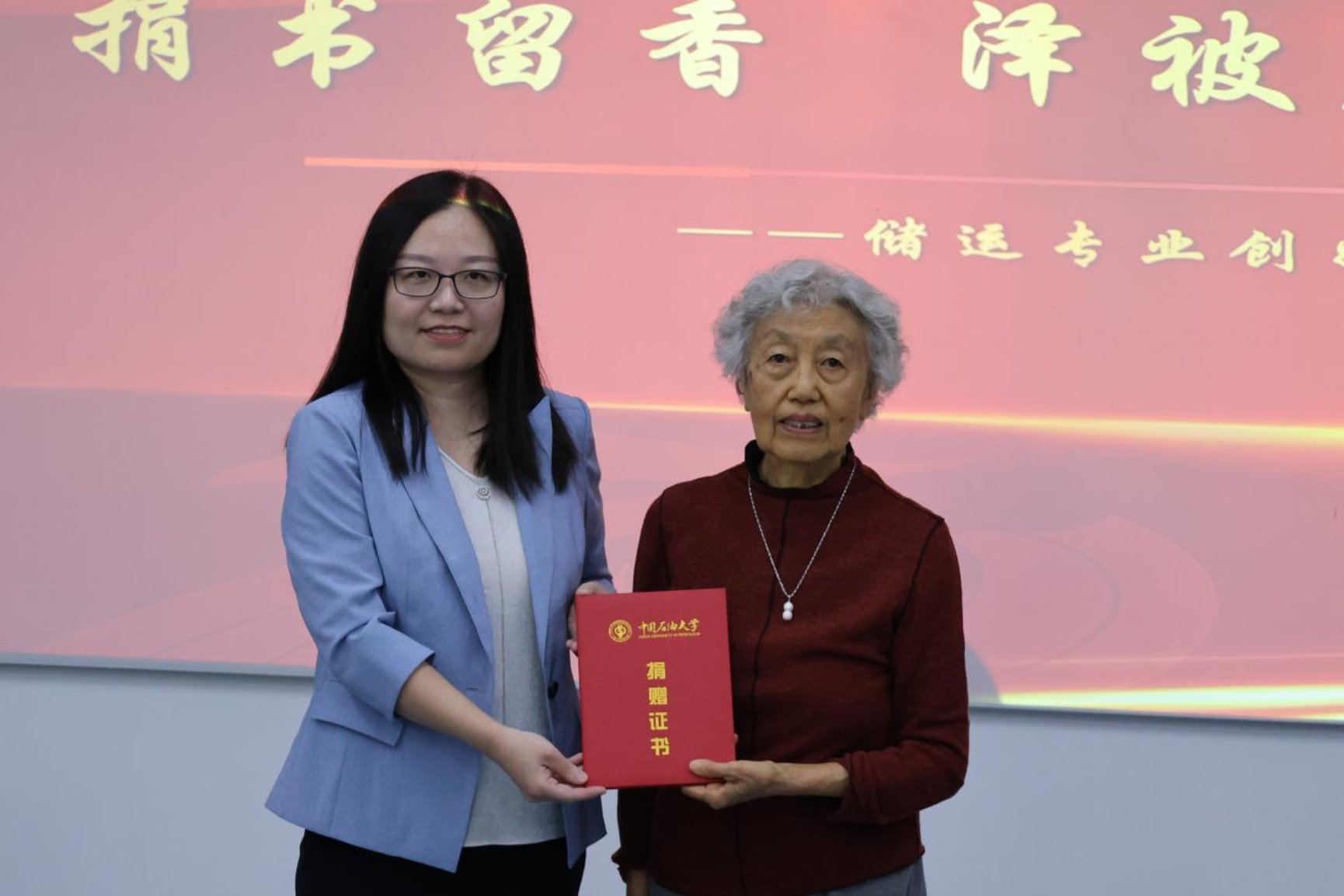 捐書留香,澤被后學(xué);師者大愛,照亮后人。此次見面會(huì)的第二幕重頭戲是儲運(yùn)專業(yè)歷史資料捐贈(zèng)儀式。翁維瓏校友向?qū)W校捐贈(zèng)了翁心源先生于1944年編寫的國內(nèi)第一本輸油管教材的硫酸紙印刷底稿及其他珍貴史料。翁先生是在清華大學(xué)創(chuàng)立石油儲運(yùn)專業(yè)的第一人,其留存的這些史料對追溯我國油氣儲運(yùn)事業(yè)及高等教育的源頭具有極其重要的作用。嚴(yán)大凡教授向?qū)W校捐贈(zèng)了她精心收藏的上百件珍貴歷史資料,這些資料是我國油氣儲運(yùn)事業(yè)及高等教育發(fā)展歷程的重要見證。學(xué)校檔案館館長海鳳代表學(xué)校向翁維瓏校友和嚴(yán)大凡教授頒發(fā)了捐贈(zèng)證書。