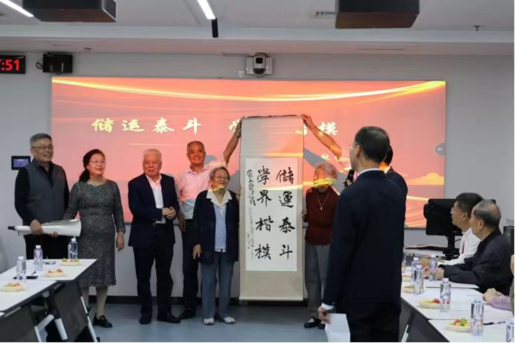 70年風(fēng)風(fēng)雨雨,70載春華秋實(shí)。正是前輩們篳路藍(lán)縷的創(chuàng)業(yè)、百折不撓的堅(jiān)持、前赴后繼的奮斗,成就了中國油氣儲運(yùn)的基業(yè)。與會(huì)校友懷著崇敬的心情,追憶我國油氣儲運(yùn)事業(yè)的先驅(qū)和老一輩教育工作者艱苦奮斗的創(chuàng)業(yè)史,感恩他們所建立的不朽功勛。作為他們的杰出代表,嚴(yán)大凡教授德高望重、學(xué)富五車、桃李滿天下,堪稱大先生、教授的教授。翁維瓏、黃維和、錢建華、孫鴿、閆寶東、宮敬、何利民代表中國石油大學(xué)油氣儲運(yùn)專業(yè)校友,向嚴(yán)老師敬獻(xiàn)了著名書法家寇克讓先生書寫的“儲運(yùn)泰斗,學(xué)界楷模”字幅,以表達(dá)全體校友對嚴(yán)老師的崇高敬意。今年適逢嚴(yán)老師九十大壽,校友代表們還向她敬獻(xiàn)了寇克讓先生書寫的“福”字,衷心祝愿老先生福如東海、壽比南山。