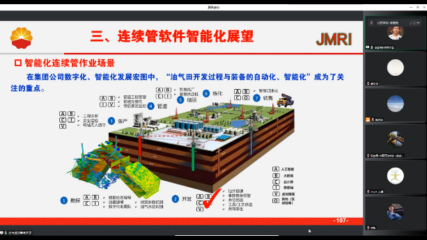 本次學(xué)術(shù)會議,湯主任主要圍繞連續(xù)油管軟件技術(shù)方面展開講解,詳實周到地為大家講述了連續(xù)管技術(shù)配套軟件的詳細(xì)狀況、中石油主要軟件功能介紹和連續(xù)管軟件智能化展望等內(nèi)容。開闊了同學(xué)們的科學(xué)視野,了解到了連續(xù)油管軟件技術(shù)的前沿科技。