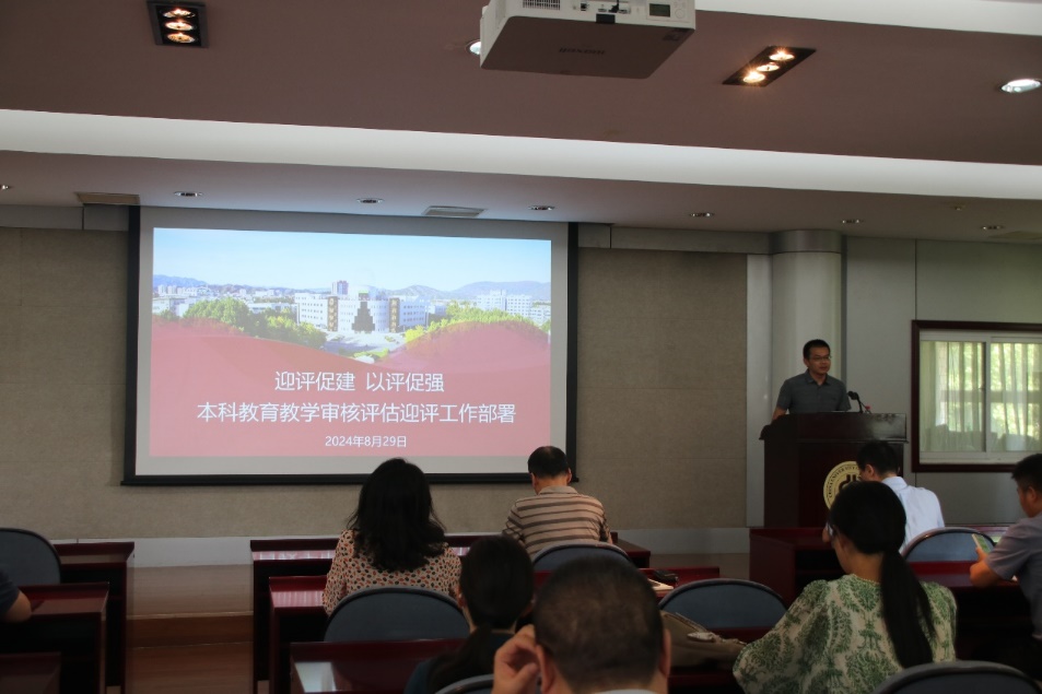 本科教學副院長張行從迎評工作安排、任務、要求等方面對本科教育教學審核評估迎評工作進行了詳細部署,并提出了的具體要求。他強調,要以新一輪本科教育教學審核評估為契機,帶動學院人才培養能力的提升,要進一步強化大局意識與責任意識,細致分工,確保每一項迎評任務落到實處,保障本科教育教學審核評估的順利進行。