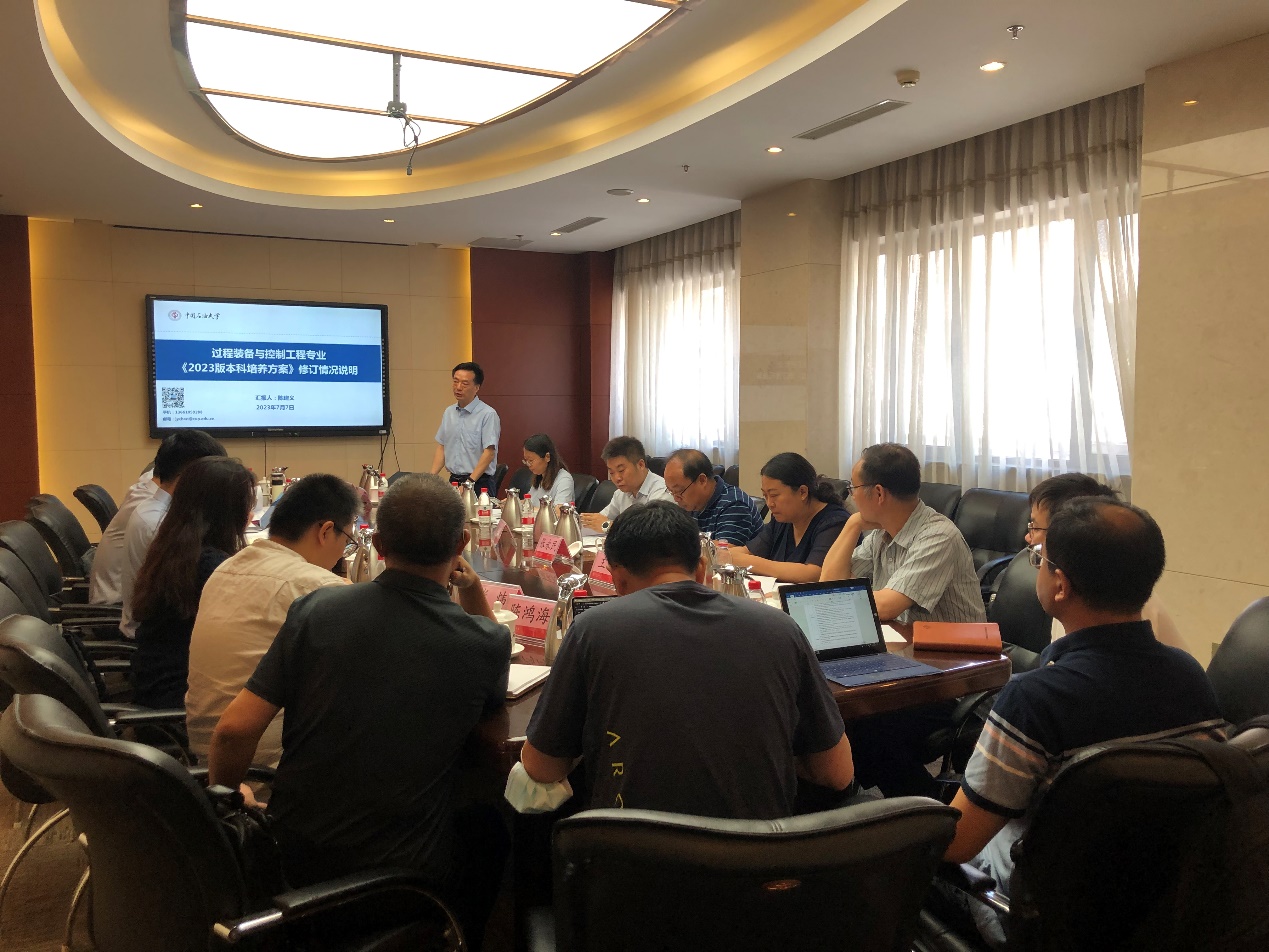7月9日,機械學院過程裝備與控制工程專業建設指導委員會會議在翠宮第一會議室召開。會議主要內容為討論并修訂2023級過程專業本科生培養方案,以及專業建設與未來發展方向。中國石化工程建設有限公司李進鋒、中國石油安全環保技術研究院羅方偉、中國特種設備檢測研究院李翔、中海油研究總院侯廣信等企業專家,機械學院副院長劉書海、張玉明,教務處副處長宋健斐,以及過程裝備系全體教師參加會議。會議由機械學院副院長張玉明主持。