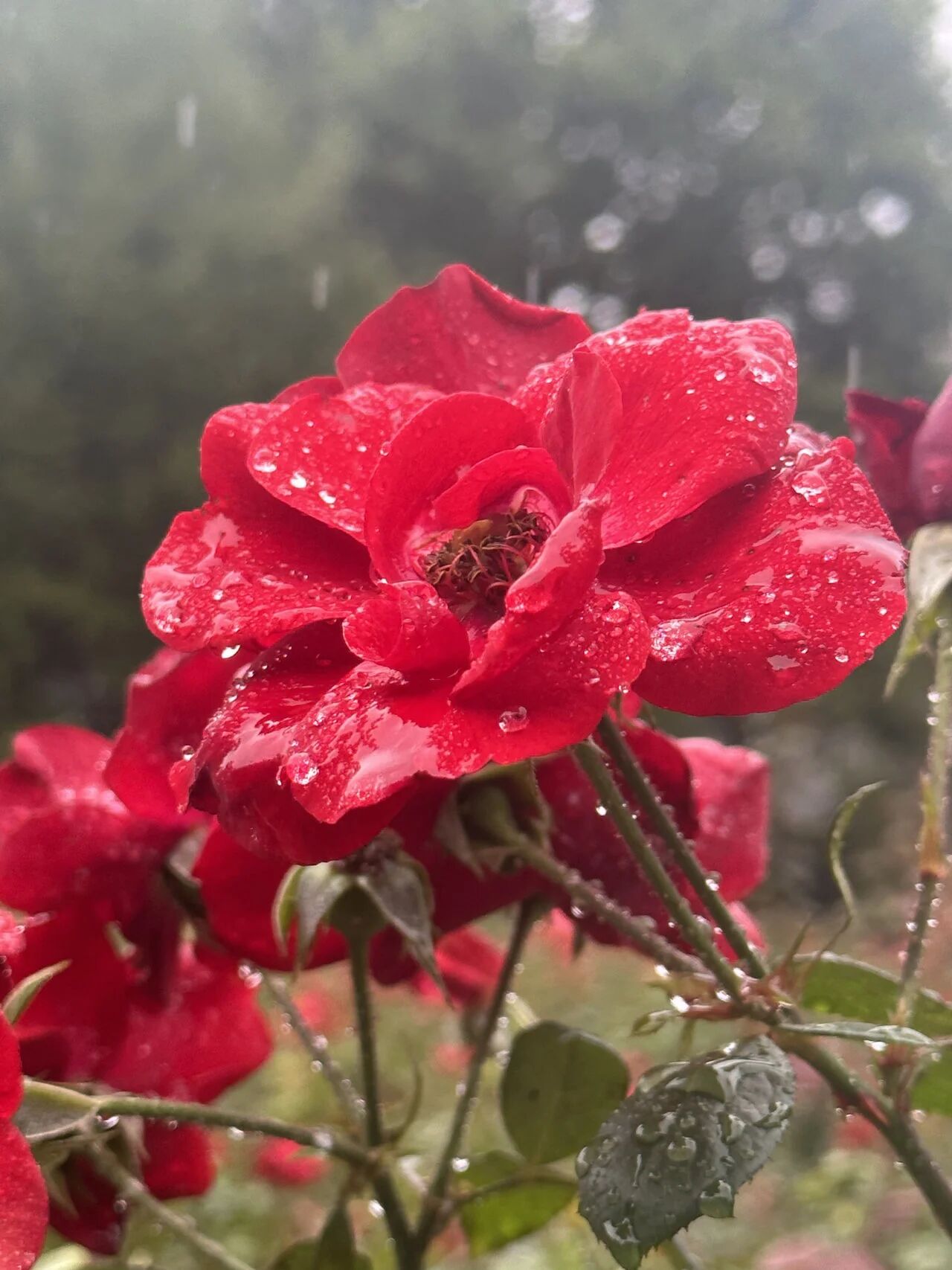 聽,雨在彈奏;看,花在聆聽。雨時,它們共舞;晴后,它們熠熠生輝。每一顆水珠里,都倒映著一個微縮的秋天。