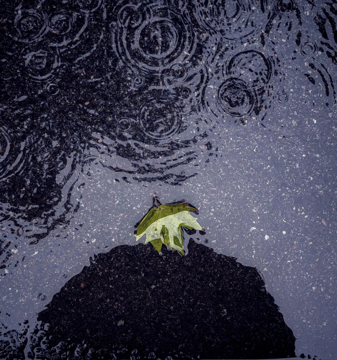 落葉是秋天墜落的音符,漣漪是雨滴彈奏的波紋,它們在水洼相遇,共譜一曲靜謐的協奏。