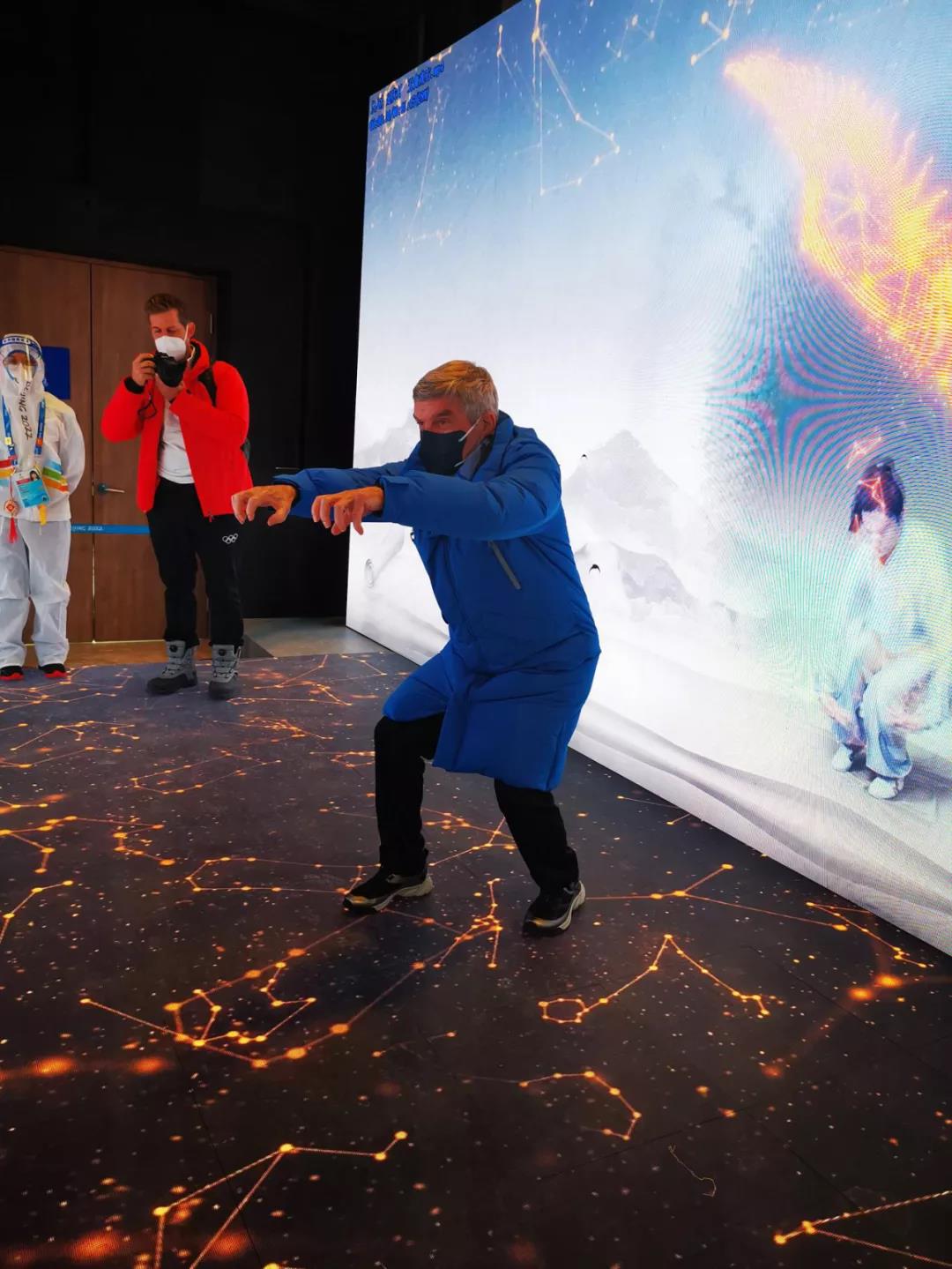 圖為巴赫主席在延慶冬奧村“10秒”中醫(yī)藥體驗(yàn)館體驗(yàn)五禽戲。 延慶冬奧村供圖