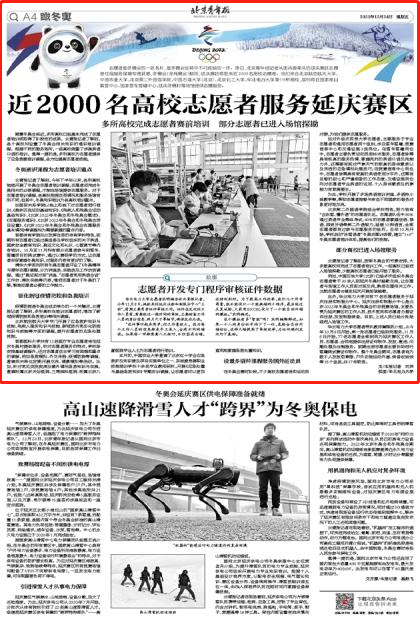 北京青年報:近2000名高校志愿者服務延慶賽區