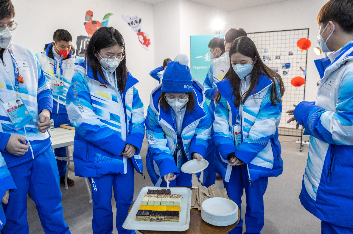冰雪兆盛世,生辰逢吉時。在這個溫馨的氛圍中,延慶村場館運行團隊秘書長嚴晗也為壽星們獻上了生日祝福,“恰逢冬奧,又趕上新年,讓大家的生日更有意義。你們從’鳥巢一代’到‘平視世界的一代’,要做好傳承,成為自信、陽光、開放的新一代,讓志愿者的微笑成為冬奧會中更溫暖的陽光。”嚴晗同時還提醒大家,在工作崗位上特別要注意防疫安全。