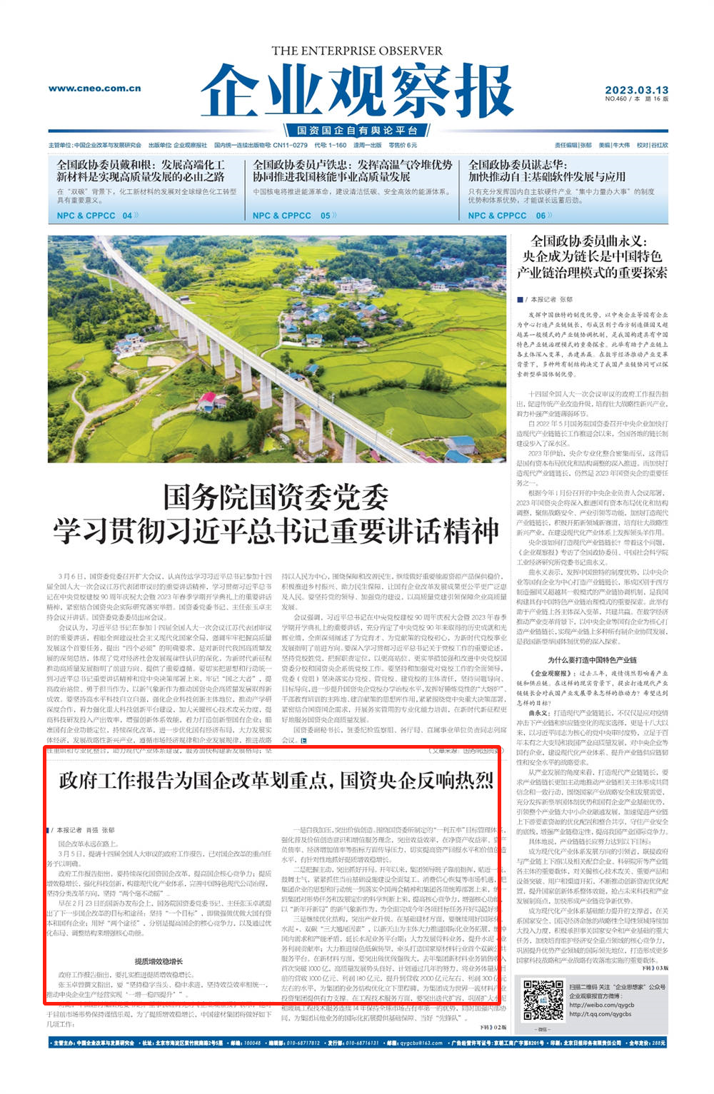 企業觀察報:政府工作報告為國企改革劃重點,國資央企反響熱烈