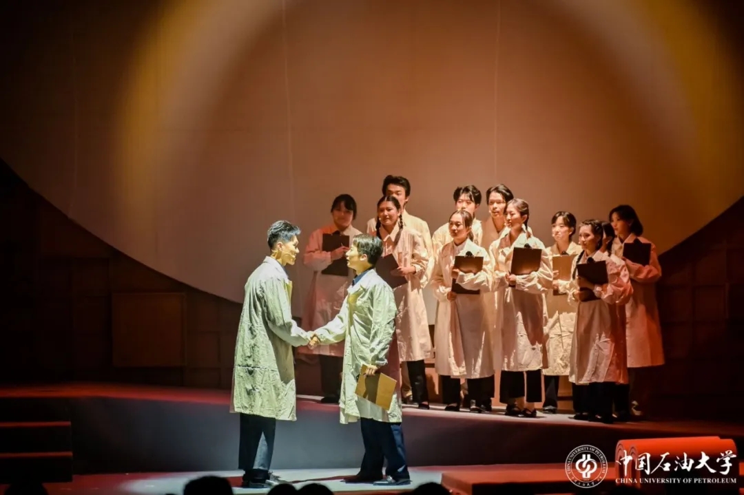 中國石油大學(xué)(北京)原創(chuàng)的大型“大先生”題材話劇《篳路昭熹》在中油大廈演出。從臺上到臺下,從演員到觀眾“別停下,繼續(xù)走!” 的吶喊響徹全場,以此致敬我國著名核化工學(xué)家和化學(xué)工程學(xué)家中國石油大學(xué)創(chuàng)校元勛曹本熹先生不平凡的一生,致敬老一輩科學(xué)家、教育家至誠報國、求實創(chuàng)新、立德樹人的信念與追求,讓“能源強國 能源報國”的精神薪火新時代新征程上傳承不熄。