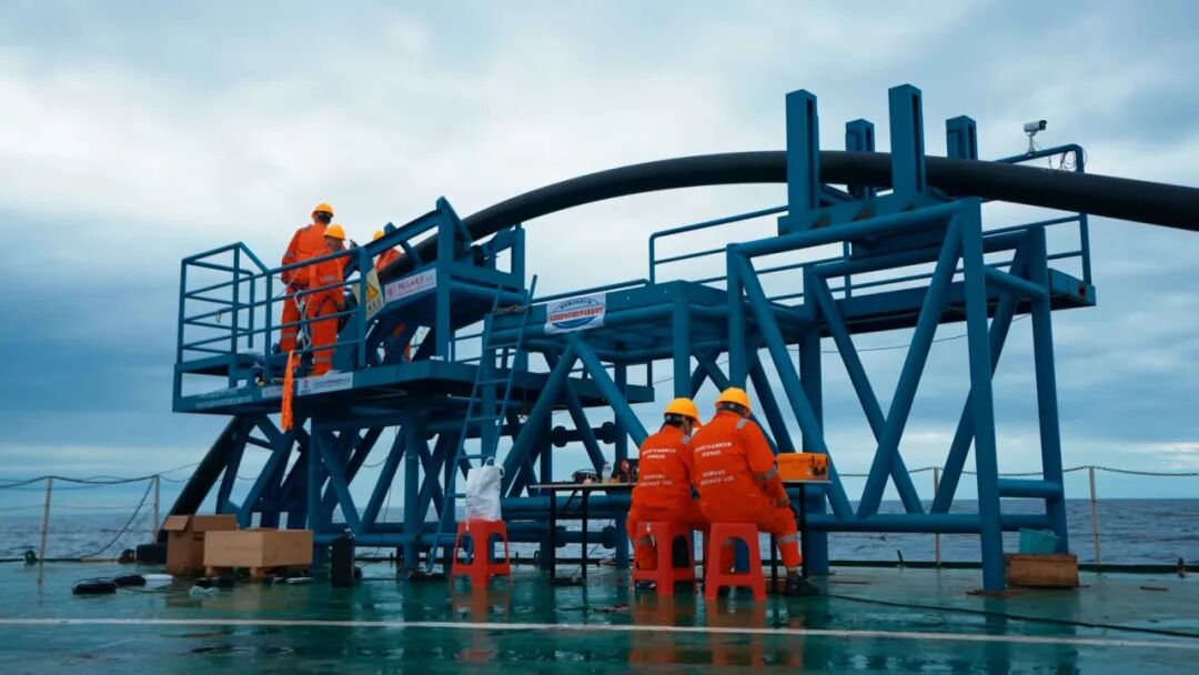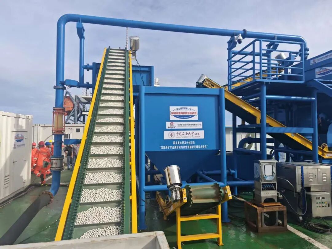 本次非金屬柔性混輸管的海試由長沙礦冶研究院有限責任公司作為海試牽頭單位與總指揮單位,從10月9日開始碼頭安裝調試,27日由廣州碼頭啟航至三亞海域,并于31日完成柔性管道海上安全布放回收與全部試驗任務,試驗區水深103m,非金屬非粘結智能柔性管總長250m,首次驗證了我國深海采礦全軟管輸送性能、管體水下空間構型與阻塞的實時健康監測能力,試驗中礦漿最大輸送體積濃度達15%,礦石粒徑20mm,穩定輸送流量為457m3/h,實現了設計水深6000m級深海采礦非金屬智能柔性管從設計方法、關鍵超耐磨材料研發、加工工藝與核心制造裝備,以及海試評價從“0”到“1”的技術突破,取得了從技術探索邁向海試驗證的勝利,為我國6000m級深海多金屬結核采礦輸送系統的聯動海試提供了核心關鍵技術與裝備。