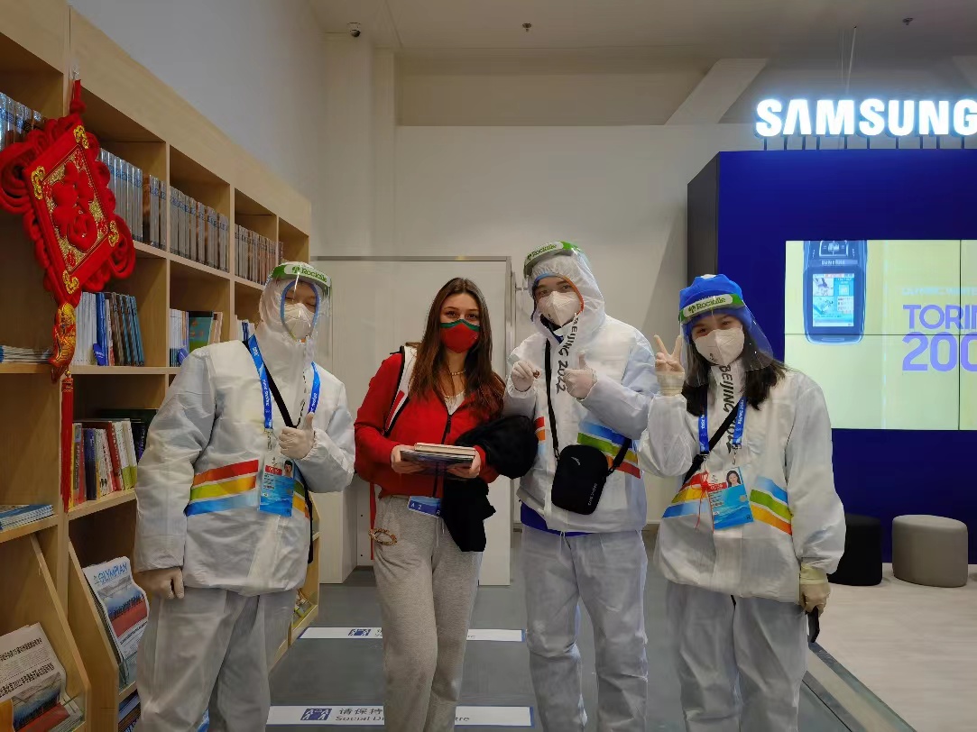 “Hello!Hi!You are welcome……”在延慶冬奧村廣場區各業態門口,冬奧村管理業務領域廣場區志愿者親切活潑的問候聲此起彼伏。雖然他們身穿隔離衣、頭戴面屏以及口罩,幾乎遮擋了全部面容,但志愿者們始終堅持用最美的微笑,向外國運動員傳遞團結友好的問候。