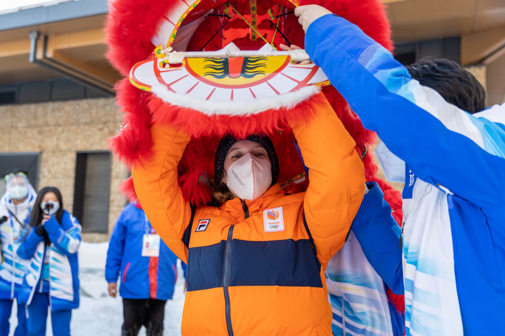 荷蘭代表團(tuán)成員和志愿者一起舞獅。