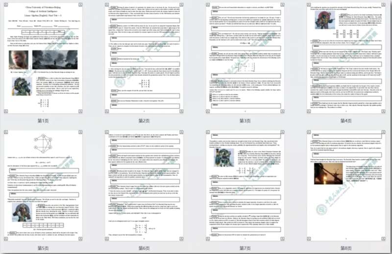 “在矩陣的廣闊世界里,那些看似‘無用’的零,實(shí)則成為了‘天命人’肩上沉甸甸的責(zé)任,需借助坐標(biāo)(COO)格式與壓縮稀疏行(CSR)格式的智慧來巧妙承載;城門口的守衛(wèi),以矩陣秩的計算為鑰匙,考驗(yàn)著每一位求學(xué)者;踏入城池,一位癡迷于線性系統(tǒng)的老者,以刁鉆難題設(shè)下重重關(guān)卡,等待著你的解答;唯有助持國天王解開長久困擾他的‘線性代數(shù)’之謎,方能贏得他的臣服……”這是中國石油大學(xué)(北京)人工智能學(xué)院教授劉偉峰為“線性代數(shù)”期末考試策劃的試卷。