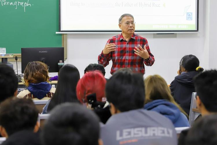 Volunteer teacher Dai Xilong gives a lecture at the Karamay campus of China University of Petroleum-Beijing in northwest China's Xinjiang Uygur Autonomous Region, Oct. 14, 2024. (Xinhua)