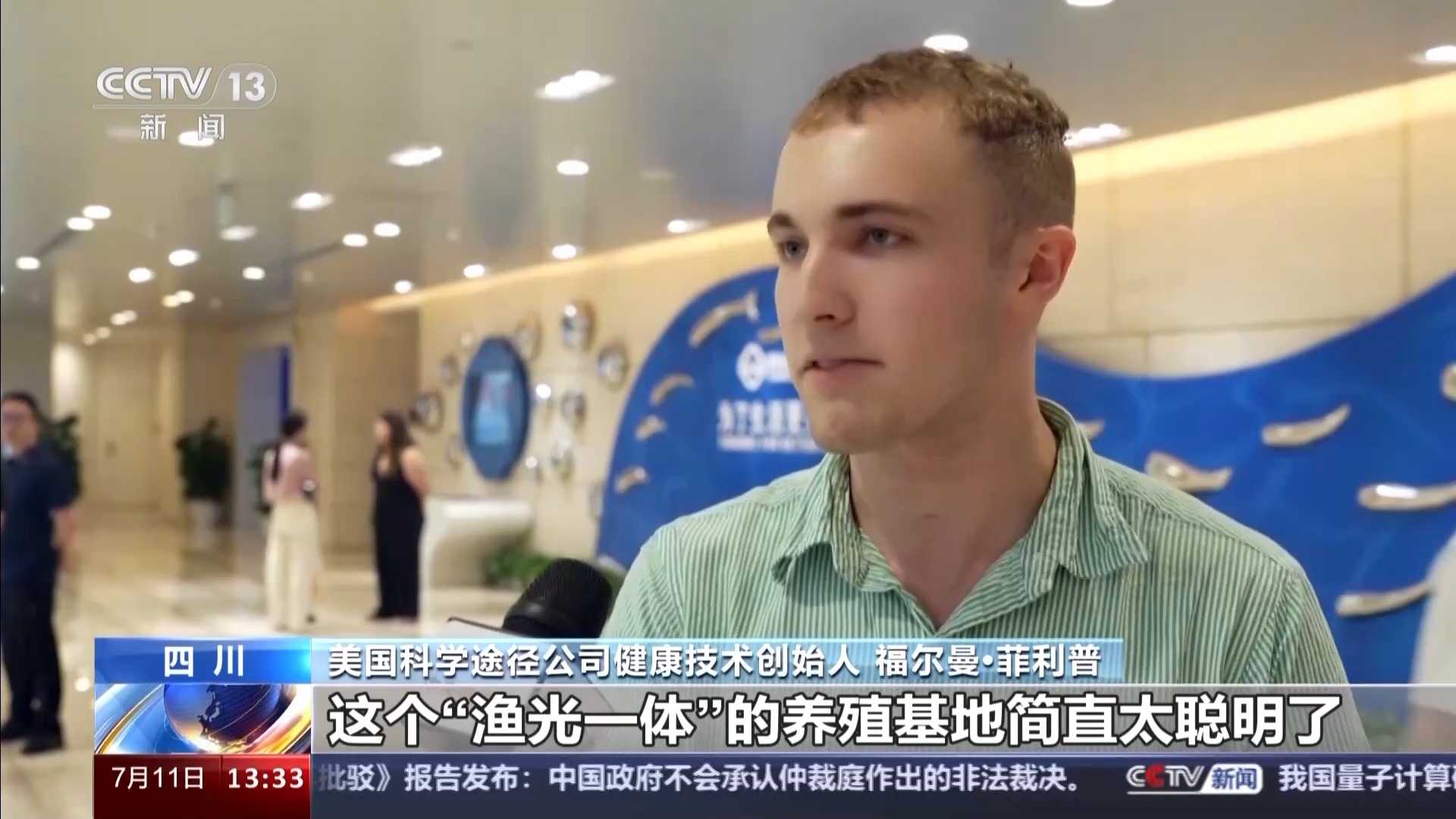 美國科學途徑公司健康技術創始人 福爾曼·菲利普:這個“漁光一體”的養殖基地,簡直太聰明了,我從來沒見過,在魚塘上方整合太陽能,做到物盡其用。