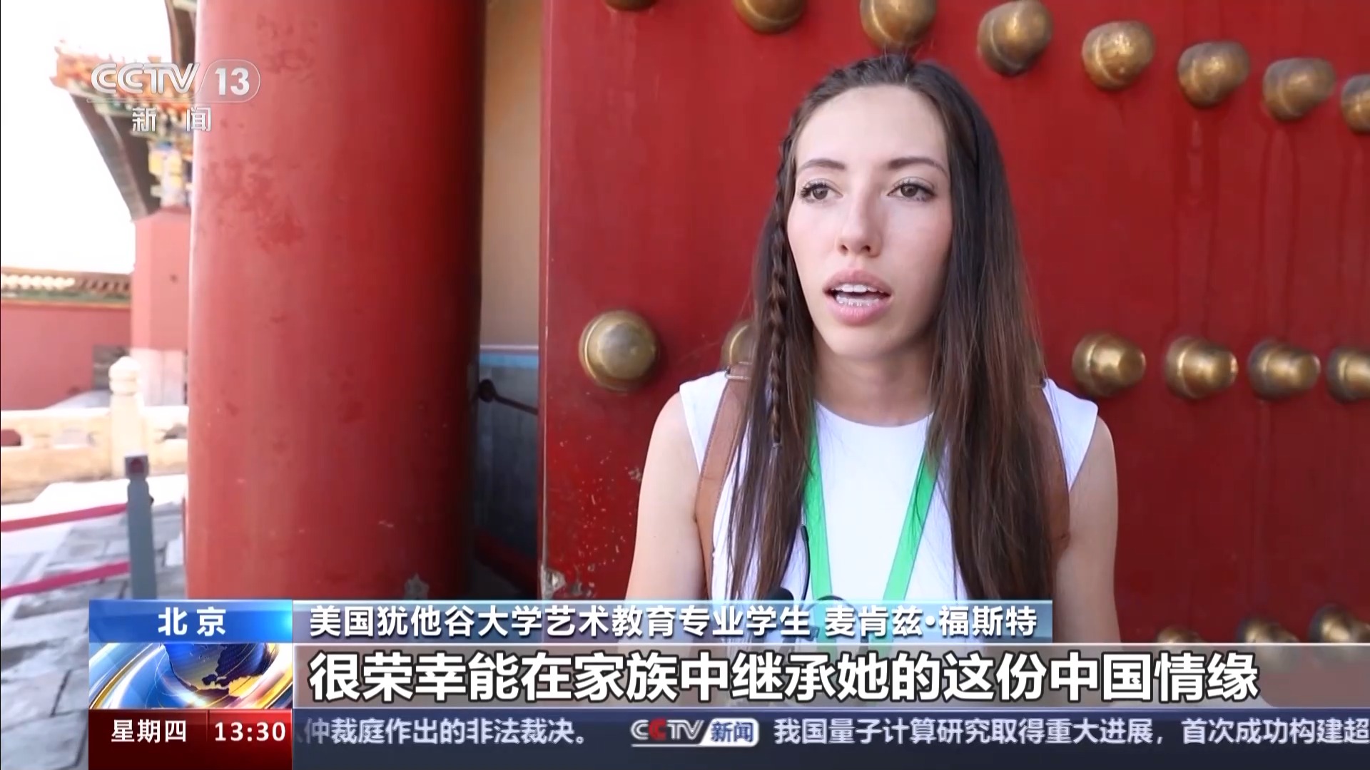 美國猶他山谷大學藝術教育專業學生 麥肯茲·福斯特:我正在讀她寫的《我在中國的歲月》,這是她在中國生活的回憶錄,她說她去了中國不同的城市,現在能來到她來過的城市,看到當今的變化,這太奇妙了,很榮幸能在家族中繼承她的這份中國情緣,希望我們這一代人能夠繼續傳承中美友誼。