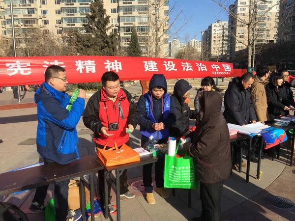 在國家第一個憲法日到來之際,12月4日,石大青年志愿者協會數名志愿者前往天通苑南街道社區,和當地青年匯成員一起參加了由天通苑南街道辦事處舉行的普法宣講活動。志愿者在社區廣場張貼海報,向居民宣傳法律知識,派發法律書籍,隨機進行街頭采訪和問卷調查。