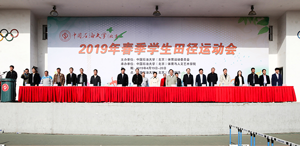 4月19日至20日,中國(guó)石油大學(xué)2019年春季學(xué)生田徑運(yùn)動(dòng)會(huì)在紅旗操場(chǎng)舉行,校領(lǐng)導(dǎo)山紅紅、張來斌、吳小林、韓克飛、鮑志東、李根生、韓尚峰,相關(guān)職能部門以及學(xué)院(研究院)負(fù)責(zé)人出席運(yùn)動(dòng)會(huì)開幕式。校長(zhǎng)張來斌致開幕詞,黨委書記山紅紅宣布運(yùn)動(dòng)會(huì)開幕,黨委副書記、副校長(zhǎng)韓尚峰主持開幕式。來自各學(xué)院(研究院)的3122名運(yùn)動(dòng)健兒參加了18個(gè)田徑項(xiàng)目、10個(gè)集體項(xiàng)目的競(jìng)賽。