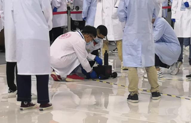在性能競賽環節,石大代表隊在第一輪成績不理想的情況下,及時調整實驗方案,進行試劑的重新稱量、配比,并結合賽前大量的實驗經驗,在第二輪超過中北大學、北京化工大學、清華大學等高校代表隊,取得了距離終點線0.054m的好成績。