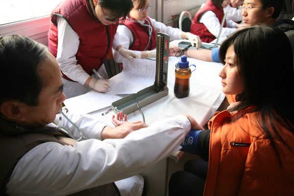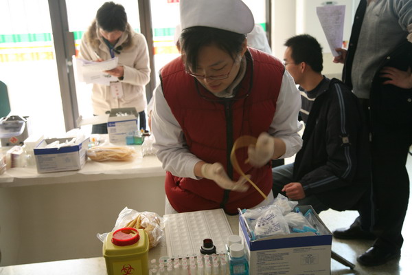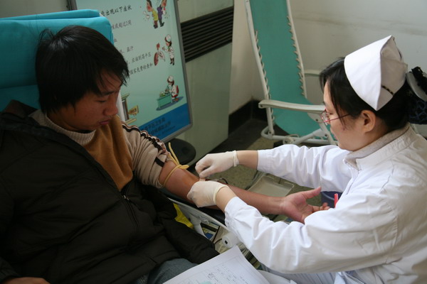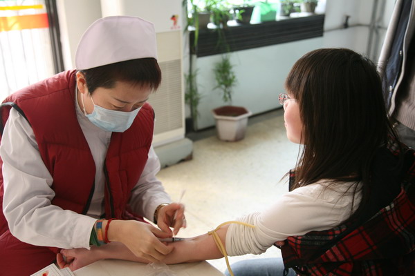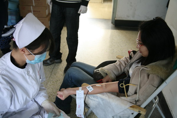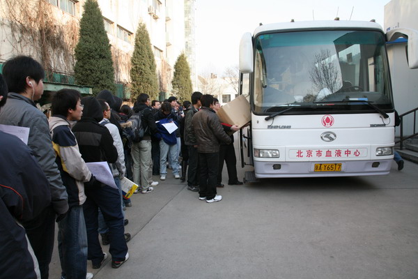 2009年2月28日,在校領導、校辦、校紅會的大力支持下,圓滿完成2009年度無償獻血工作。經校醫院統計,參加本次無償獻血活動的實際獻血人數為315人,采血總量63200毫升,其中近百人兩次以上無償獻血。在獻血活動過程中,陳大恩副校長多次來到現場看望獻血學生和工作人員,獻血現場氣氛異常感人。學生踴躍參加獻血,距獻血開始還有一小時時,在校醫院門前排隊準備參加無償獻血的同學已達到千人。由于北京市血液中心采血人數和準備物品有限,只好將沒有拿到表格的同學及時疏散。但仍有數百名學生自愿當體檢不合格人員的替補,繼續在校醫院門前等候。