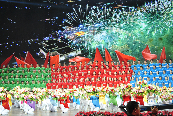 中共中央政治局常委李長春與首都高校學生代表一起觀看演出,并與大學生演員和代表親切交談,稱贊他們的演出感情真摯,充滿青春激情,活力四射,感染力強,給人的心靈以深深震撼。他希望廣大青年學生認真學習領會胡錦濤總書記在紀念中國共產主義青年團成立90周年大會上的重要講話精神,珍惜祖國發展的寶貴機遇,胸懷振興中華的遠大志向,以堅定的信念、寬廣的胸懷、創造的激情、務實的態度,踴躍投身改革開放和社會主義現代化建設的廣闊舞臺,在實現中華民族偉大復興的征程上譜寫人生壯麗樂章,為祖國和人民作出應有的貢獻。