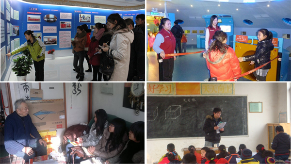 本次活動中,廣大團員青年以組隊或個人的形式,深入全國各地,開展了以十八大精神宣講、“紅色之旅”參觀學習、社會調查、專業(yè)實踐和志愿服務為主要內容的實踐活動。地球科學學院組織社會實踐團赴鐵人王進喜紀念館和大慶油田歷史陳列館,學習鐵人精神,了解石油工業(yè)發(fā)展歷史;石油工程學院實踐團赴天津市薊縣孫各莊滿族鄉(xiāng)開展十八大精神專題宣講和實踐調研,為村民解析十八大報告中“促進農(nóng)業(yè)現(xiàn)代化”“推動城鄉(xiāng)一體化”“加強社會主義新農(nóng)村建設”等熱點問題;化學工程學院、工商管理學院學生利用寒假到中國科技館開展義務講解、科技宣傳、維持館內秩序等服務,到社區(qū)、敬老院打掃衛(wèi)生、整潔環(huán)境,為老人理發(fā),清掃積雪,為當?shù)刂行W生進行寒假學業(yè)輔導,開展了“科技新館志愿行”“社區(qū)活動風采展”“溫暖社區(qū)你我他”“敬老愛幼我先行”和“愛心輔導寒假行”等系列志愿服務活動。機械與儲運工程學院、提高采收率研究院學生寒假期間就近參觀延安革命歷史博物館、南昌起義紀念館和南京大屠殺紀念館等愛國主義教育基地,接受革命歷史教育,堅定報效祖國的理想信念;地球物理與信息工程學院、外國語學院學生針對家鄉(xiāng)的城鄉(xiāng)統(tǒng)籌發(fā)展、重大“民生工程”實施、農(nóng)村增收脫貧及物價上漲對農(nóng)民生活的影響等問題開展調查;