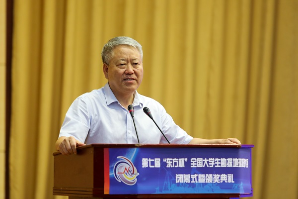 8月27日下午,第七屆“東方杯”全國大學(xué)生勘探地球物理大賽閉幕式暨頒獎典禮在中國石油大學(xué)中油大廈舉行。中國科學(xué)院院士、中國石油大學(xué)地球物理學(xué)院名譽(yù)院長朱日祥,中國石油集團(tuán)東方地球物理勘探有限責(zé)任公司執(zhí)行董事、黨委書記、總經(jīng)理茍量,黨委副書記、工會主席王治富,SEG中國總經(jīng)理吳靜宇,中國石油大學(xué)黨委書記山紅紅,中國石油集團(tuán)東方地球物理勘探有限責(zé)任公司、SEG中國相關(guān)負(fù)責(zé)人,石大相關(guān)職能部門和學(xué)院負(fù)責(zé)人,部分參賽高校相關(guān)負(fù)責(zé)人以及全體決賽參賽選手參加活動。