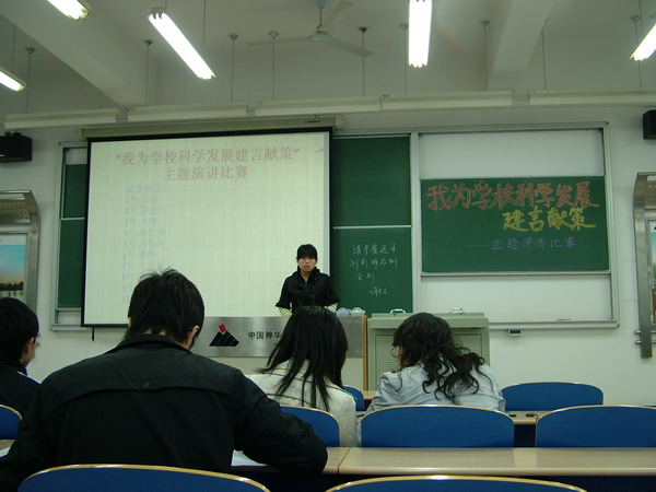 4月19日晚,化學科學與工程學院團委積極響應校團委號召, 在三教103教室成功舉辦了“我為學校科學發展建言獻策”主題演講比賽預賽。
