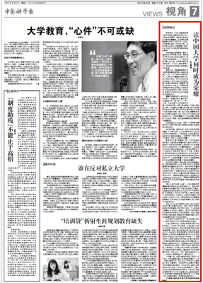中國科學報刊登石大地球科學學院教師談大學教育的文章