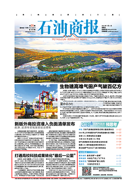 7月4日出版的《石油商報》第1版以“打通高校科技成果轉化‘最后一公里’”為題
