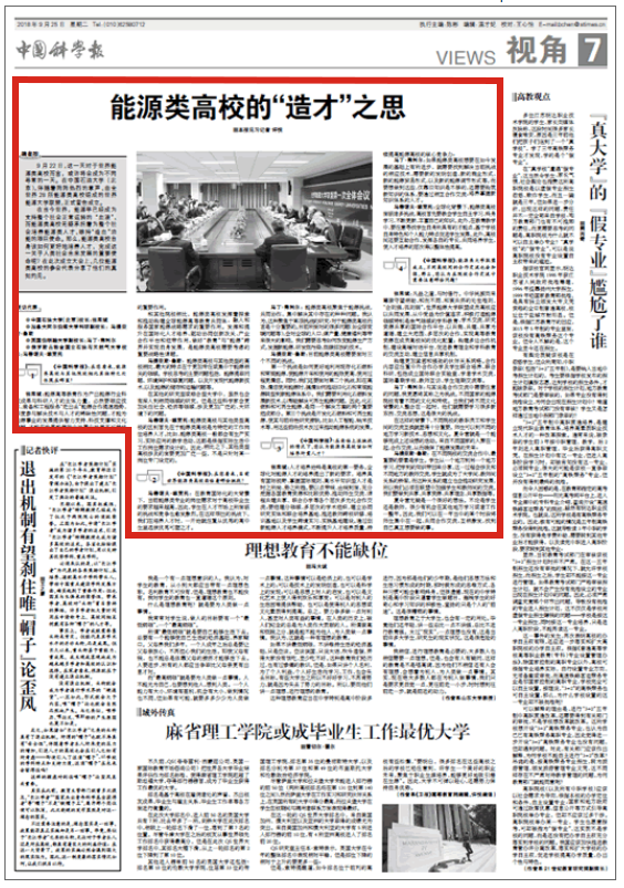 中國科學報-科學網:能源類高校的“造才”之思