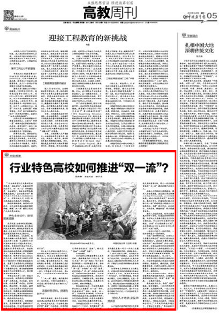 10月8日出版的中國(guó)教育報(bào)“高教周刊”版塊:《行業(yè)特色高校如何推進(jìn)“雙一流”?》
