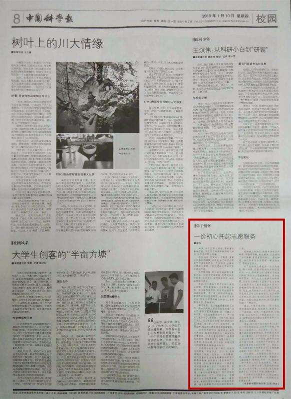 中國科學報刊登石大地球科學學院學生談志愿服務的文章