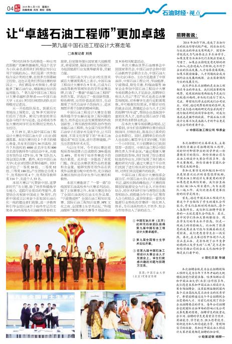 5月19日,歷時兩個多月的第九屆中國石油工程設計大賽在石大落幕。本次大賽由世界石油理事會中國國家委員會、中國石油學會和中國石油教育學會聯合主辦,中國石油大學(北京)承辦。