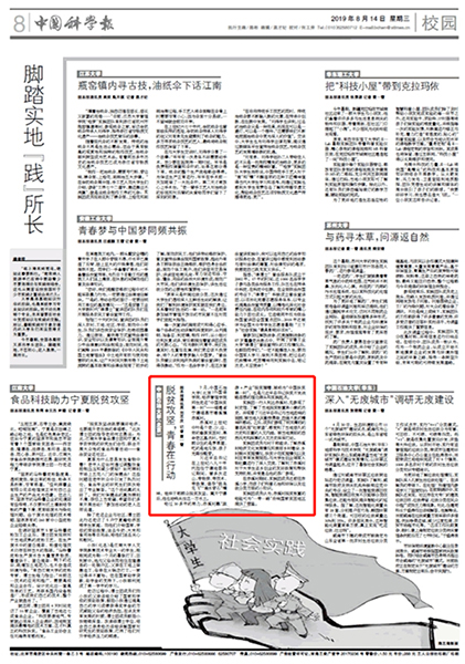 中國(guó)科學(xué)報(bào)8月14日在第八版以《脫貧攻堅(jiān),青春在行動(dòng)》為題進(jìn)行了報(bào)道。