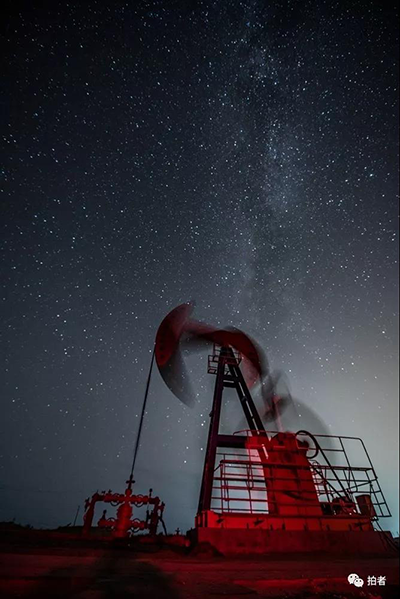 2019年10月29日,塔中,夜幕下正在運轉的抽油機。