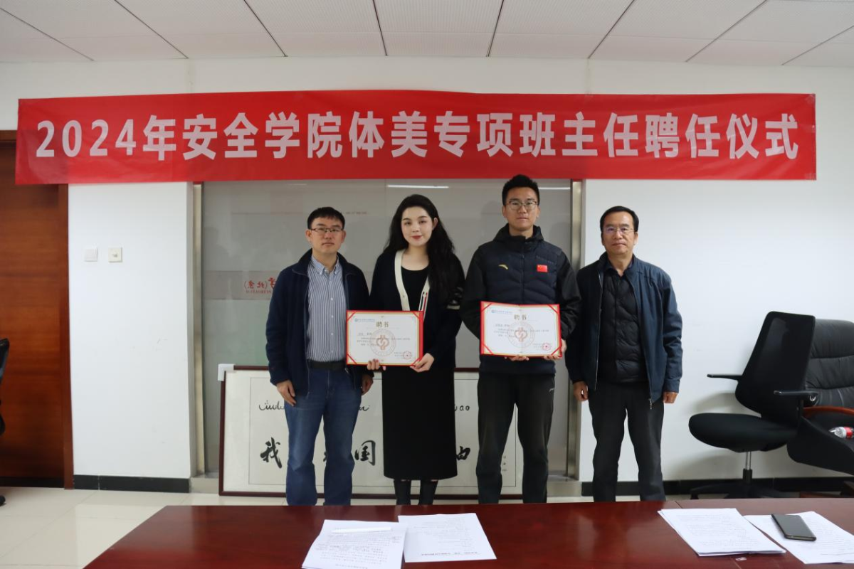 儀式上,孫為、趙凱分別為學(xué)院新聘任“體美”專項班主任杜恒、高菁遙分別授予聘書。