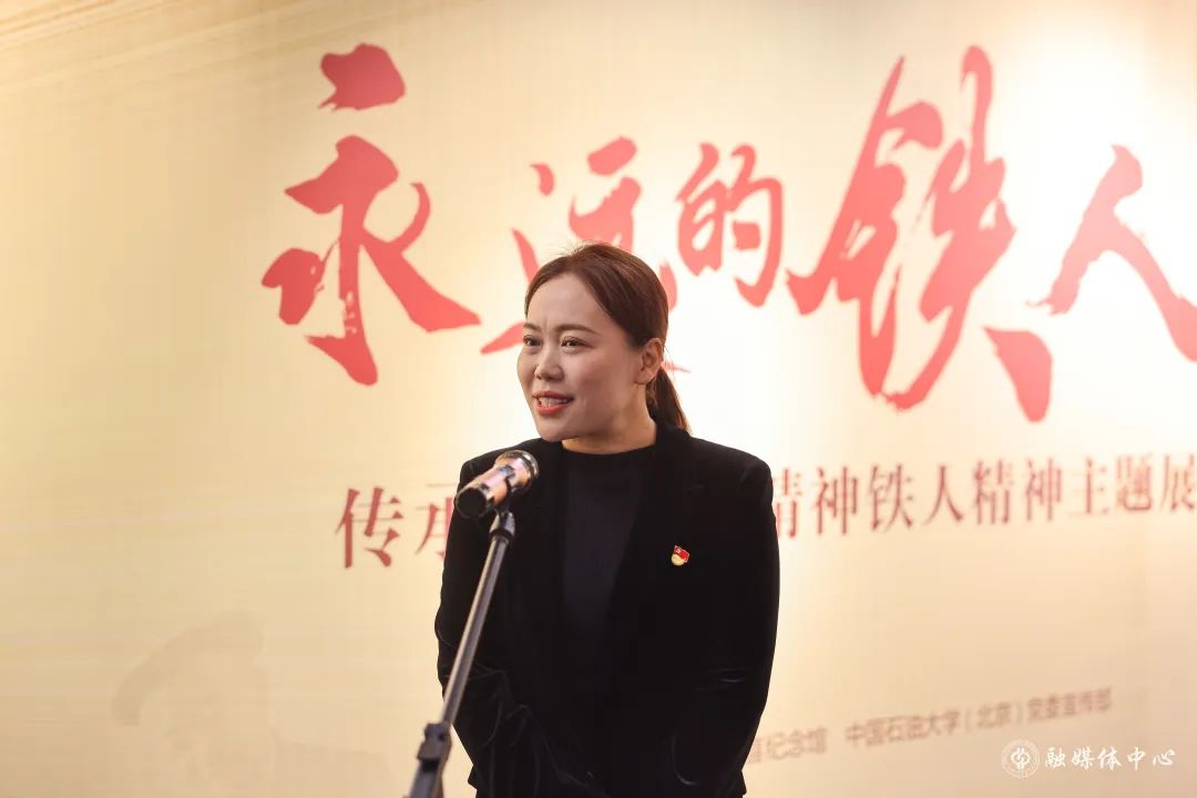蘇愛(ài)華在致辭中表示,大慶鐵人王進(jìn)喜紀(jì)念館始終大力弘揚(yáng)大慶精神鐵人精神,將大慶精神鐵人精神研究的成果進(jìn)行轉(zhuǎn)化和輸出,提煉基本陳列的精華,開(kāi)發(fā)設(shè)計(jì)了此次展覽。在鐵人王進(jìn)喜同志誕辰一百周年之際,紀(jì)念館把中石大作為全國(guó)巡展的第一站,希望能夠在中石大掀起學(xué)習(xí)英雄、崇尚英雄的熱潮,激勵(lì)師生為中華民族偉大復(fù)興作出貢獻(xiàn)。