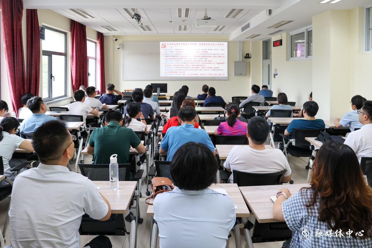 為深入學習習近平新時代中國特色社會主義思想,扎實推進深入貫徹中央八項規(guī)定精神學習教育走深走實,健全完善學校黨員常態(tài)化培訓機制,提升黨員教育培訓工作實效,6月26日下午,全校5800余名黨員在校本部、克拉瑪依校區(qū)和油田現(xiàn)場等地,通過1個主會場和47個分會場“同上一堂課”,共同學習中央黨校(國家行政學院)黨的建設教研部副主任祝靈君教授主講的專題報告。