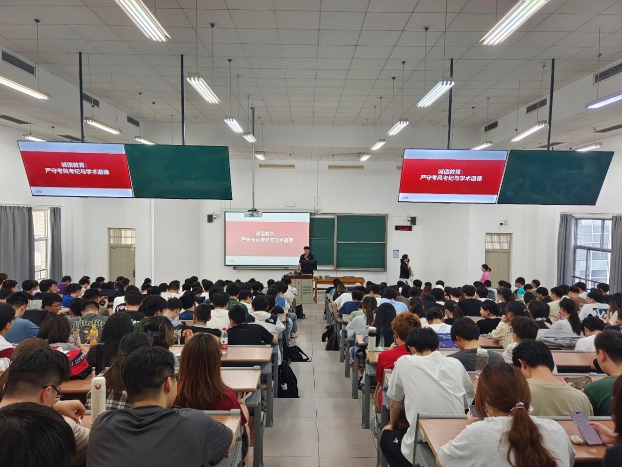 學(xué)生工作隊(duì)伍堅(jiān)持下沉一線,深入宿舍狠抓舍風(fēng)建設(shè),深入課堂針對(duì)學(xué)生課堂不文明現(xiàn)象開(kāi)展專(zhuān)項(xiàng)督導(dǎo),嚴(yán)格大一學(xué)生早操、晚自習(xí)管理,促進(jìn)學(xué)生養(yǎng)成良好的學(xué)習(xí)生活習(xí)慣。建立“考前教育—過(guò)程監(jiān)督”管理機(jī)制,各學(xué)院通過(guò)案例警示教育、召開(kāi)誠(chéng)信教育主題班會(huì)、簽署《誠(chéng)信考試承諾書(shū)》等形式,加強(qiáng)考風(fēng)考紀(jì)宣傳、開(kāi)展誠(chéng)信應(yīng)考教育,引導(dǎo)學(xué)生誠(chéng)信應(yīng)考、遵守科學(xué)道德。機(jī)械與儲(chǔ)運(yùn)工程學(xué)院開(kāi)展“誠(chéng)信應(yīng)考宣傳月”活動(dòng),創(chuàng)新推出“誠(chéng)信考試積分制”,將誠(chéng)信表現(xiàn)納入學(xué)生綜合素質(zhì)評(píng)價(jià)。