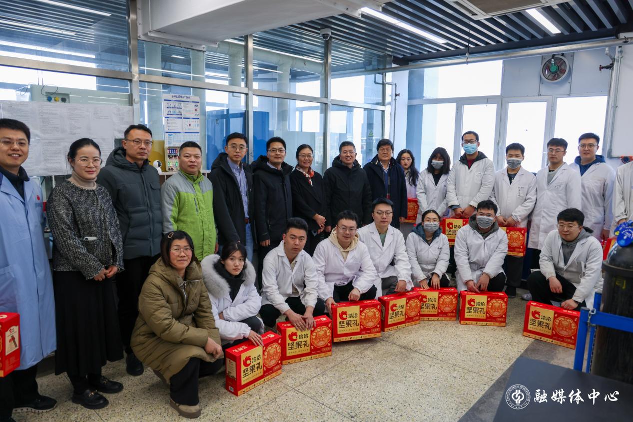 王同奇、金衍一行分別走訪了公寓、餐飲、保衛、物業、校醫院、動力維修、車隊、實驗室等,詢問了寒假期間安全保衛、后勤保障等工作情況和值守人員工作生活情況,向堅守崗位的教職工和安全保衛后勤人員送上新春祝福,對他們在春節期間恪盡職守表示衷心感謝。