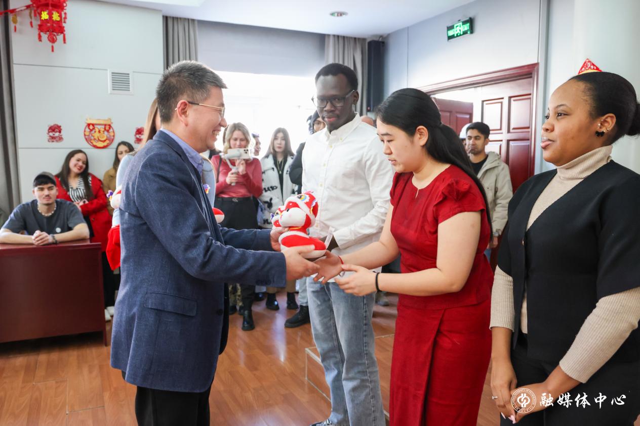 今年,學校還有來自哈薩克斯坦、土庫曼斯坦、蘇丹、厄瓜多爾等38個國家的500余名來華留學生留校度過寒假。為引導來華留學生深入感受中國春節文化,體會地道中國年味,學校組織開展了“巳巳如意 年年新禧”來華留學生新春聯歡系列活動。金衍、劉植昌向來華留學生致以新春祝愿,同來華留學生互贈春節文化禮品,共同體驗寫福字、寫春聯、扎燈籠、包餃子等傳統民俗項目。來自埃塞俄比亞的碩士研究生王美西表示,今年的春節因中國申遺成功而格外特別,雖身處異國他鄉,但學校組織的春節活動讓我們不僅收獲了歡樂,更增進了對中國文化的理解和尊重。金衍表示,這是中國申遺成功的第一個春節,希望來華留學生能夠積極參加豐富多彩的文化活動,以切身體驗感受中國春節的溫暖和中華優秀傳統文化的獨特魅力,成長為知華友華的友誼使者和合作橋梁。