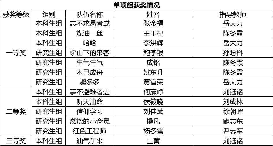 附:中石大學(xué)生在第五屆全國油氣地質(zhì)大賽上獲獎名單