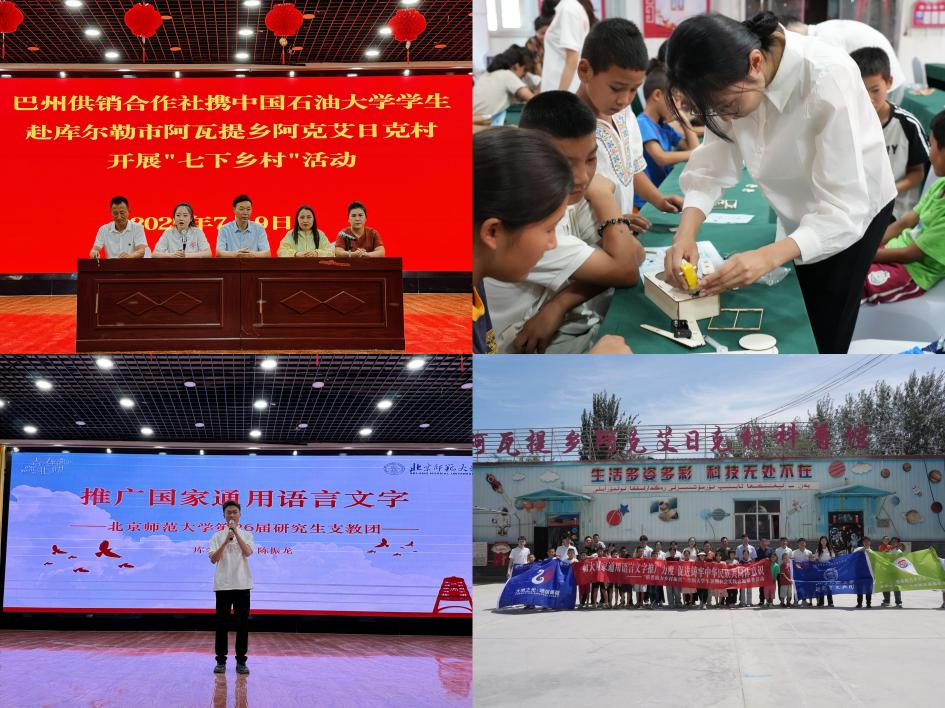 “今天大哥哥、大姐姐們給我們上課,我學到了很多科學知識。希望以后他們還能來。”7月9日,實踐團聯(lián)合北京師范大學研究生支教團,在庫爾勒市阿瓦提鄉(xiāng)阿克艾日克村開展“七下鄉(xiāng)村”活動,通過開設國家語言文字推廣、地質科普宣講、科學趣味實驗、素質拓展活動等多樣化的課程,豐富了當地少數民族學生的生活,加大了國家通用語言文字在邊疆少數民族地區(qū)的推廣力度。